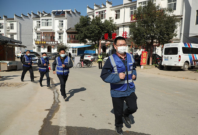 此次演練活動模擬了在強降雨天氣影響下,發現黃陂區蔡店街張家大灣某居民房屋后邊坡失穩,存在滑坡險情,情況十分緊急。險情發生后,自然資源、應急管理部門及勘察公司協同街道、鄉村一起密切配合、分工協作,組織應急隊伍有效應對,并迅速開展地質災害應急救援工作,演練具體內容包括地質災害氣象風險預警、網格專管員開展巡查監測、地質災害險情上報、地質災害應急響應、應急隊伍實施救援、邊坡雷達監測預警、無人機偵測和救援等演練科目。