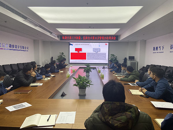 李為工程師主要介紹了《武漢軌道交通工程施工測量管理辦法》、《武漢軌道交通工程監控量測管理辦法》相關內容,對軌道交通三方測量、三方監測做了系統性介紹,從技術要點和管理辦法等方面進行了深入細致地講解。培訓過程中,部門相關項目負責人就各自工作中實際遇到的一些問題進行了熱烈的討論。